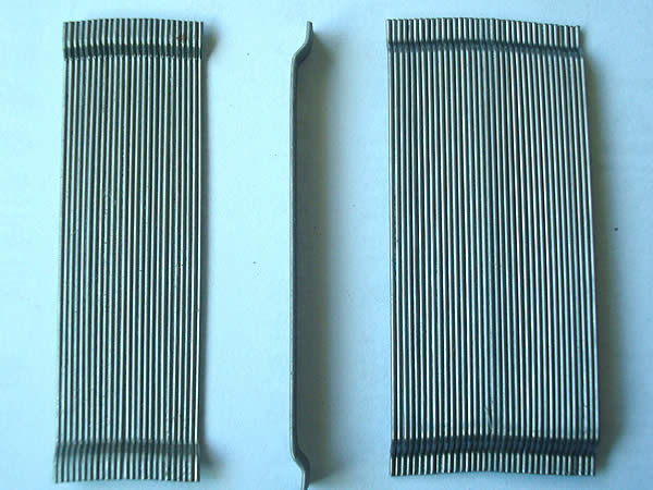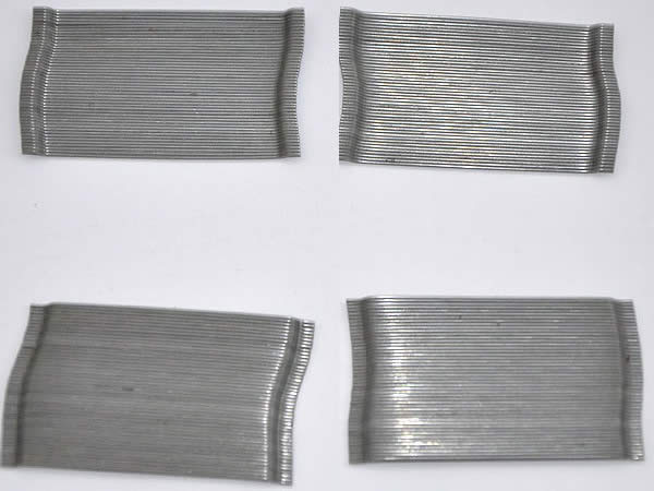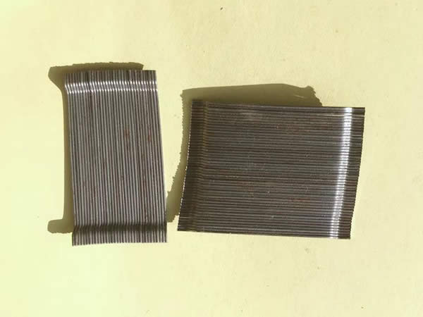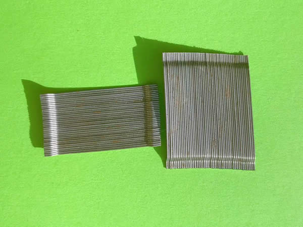 膠粘成排鋼纖維又稱聯排鋼纖維是由高強鋼絲使用水溶性膠水粘接而成。